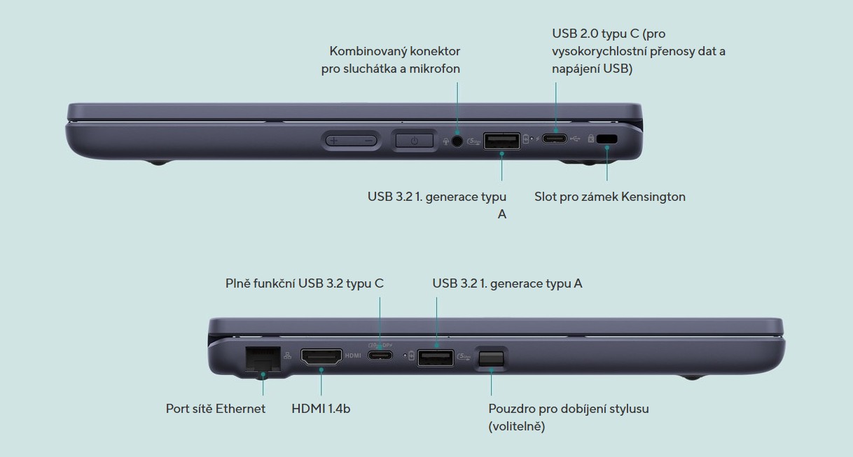 KomplexnĂ konektivita je pro studenty zásadnĂ pro efektivnĂ plnÄ›nĂ ĂşkolĹŻ, aĹĄ uĹľ jde o domácĂ Ăşkoly nebo mimoškolnĂ aktivity. ASUS BR1204F Ĺ™ešà tyto potĹ™eby portem typu C pro podporu rychlĂ©ho pĹ™enosu dat spolu se dvÄ›ma porty USB 3.2 1. generace typu A a HDMI® 1.4b, kterĂ© nabĂzejĂ komplexnĂ Ĺ™ešenĂ pro potĹ™eby pĹ™ipojenĂ.
