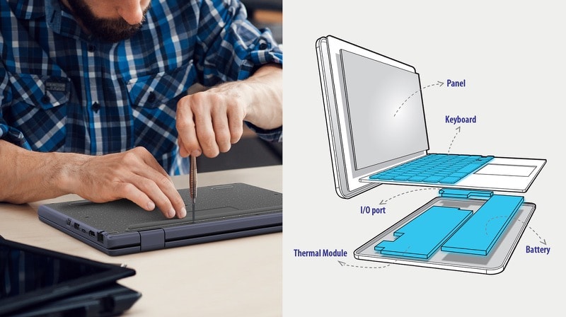 ASUS BR1204F vyniká jako vynikajĂcĂ nástroj pro neomezenou vĂ˝uku ve vzdÄ›lávánĂ K-12. PyšnĂ se odolnou povrchovou Ăşpravou odolnou proti otiskĹŻm prstĹŻ a robustnĂ modulárnĂ konstrukcĂ, která obsahuje a vymÄ›Ĺuje vnitĹ™nĂ komponenty, ÄŤĂmĹľ prodluĹľuje Ĺľivotnost produktu. ASUS BR1204F je chytĹ™e vyroben tak, aby odolal náhodnĂ˝m pádĹŻm, procházĂ pĹ™ĂsnĂ˝m testovánĂm, splĹuje americkĂ© vojenskĂ© normy1 a nároÄŤná internĂ hodnocenĂ spoleÄŤnosti ASUS, aby byla zajištÄ›na jeho neochvÄ›jná odolnost – coĹľ z nÄ›j ÄŤinĂ dokonalou volbu pro modernĂ vzdÄ›lávánĂ.