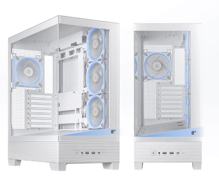Základna s úhlem 8° spojuje funkčnost a eleganci, podporuje účinné chlazení a nabízí širší výhled pro maximální zážitek. Design základny je také ideální pro prezentaci osobního stylu vašeho systému a efektů ARGB.