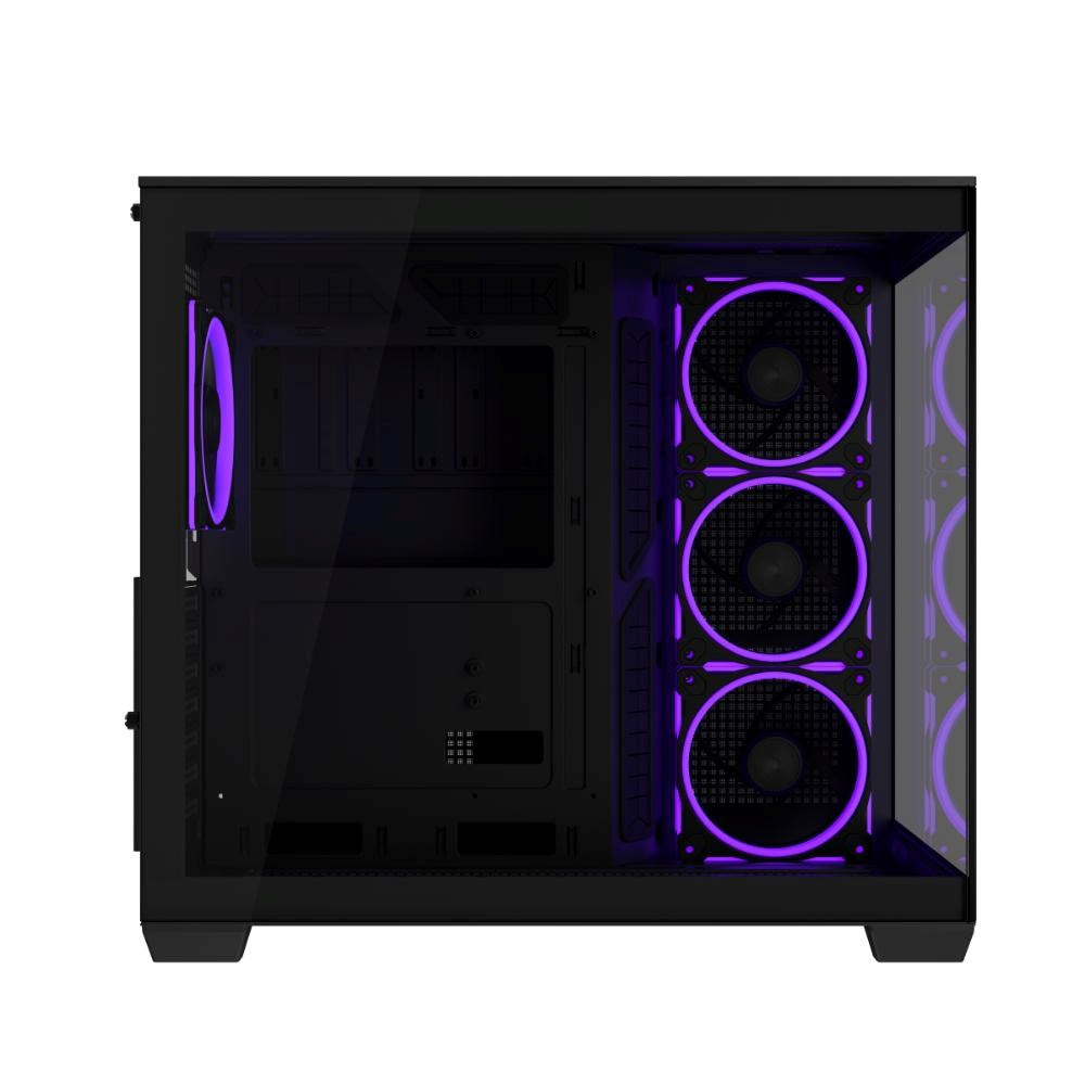 - Předinstalované ARGB ventilátory: Čtyři ARGB ventilátory s živými světelnými efekty pomáhají zajistit vyvážený chladicí výkon.