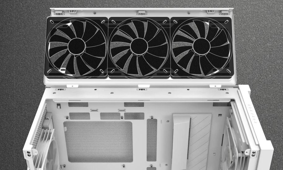 Odnímatelný horní panel usnadňuje vedení kabelů a instalaci ventilátorů nebo chladiče.