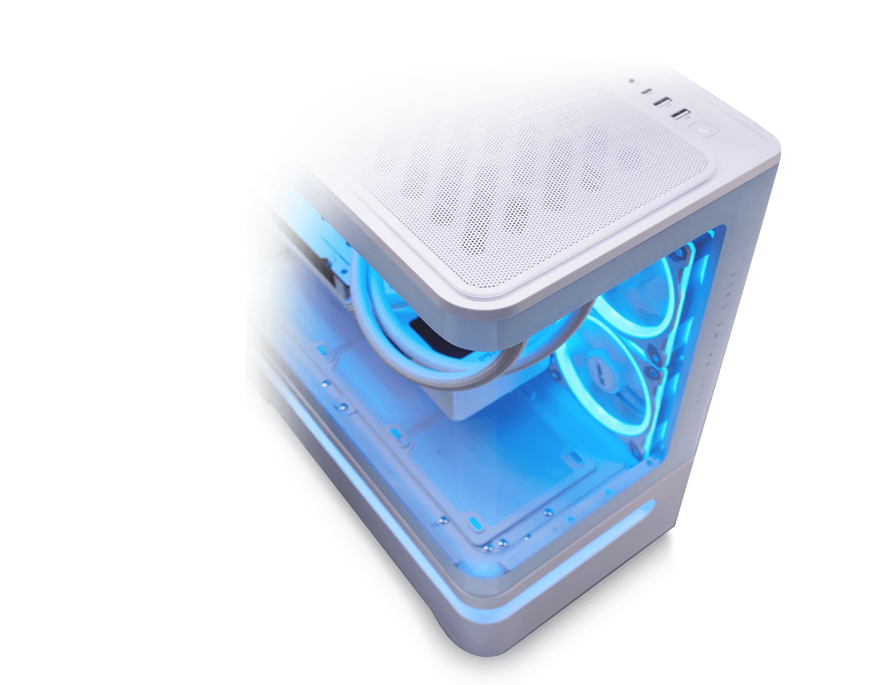 Pohledy skrz zakřivené tvrzené sklo, které se táhne po dvou stranách skříně, ukazují vnitřní komponenty z různých úhlů. Toto sklo prochází pětistupňovým procesem, který se blíží leteckým standardům, včetně tepelného zpracování, které mu dodává vynikající pevnost a odolnost. Tato technika pomáhá zajistit spolehlivou ochranu a zároveň zvyšuje zážitek z vlastní montáže, čímž uživatelům nabízí poutavý a propracovaný základ pro jejich sestavu.