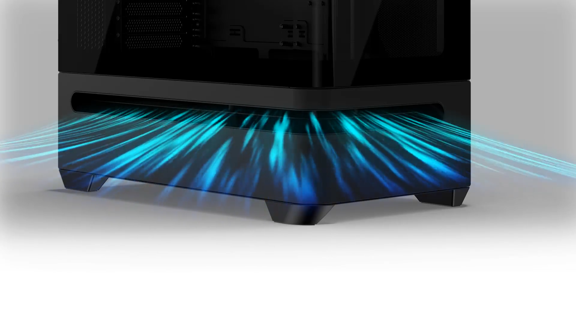 Inovativní design proudění vzduchu nabízí ideální tepelný výkon a umožňuje přívod vzduchu pro chlazení kritických komponent, zejména grafické karty.