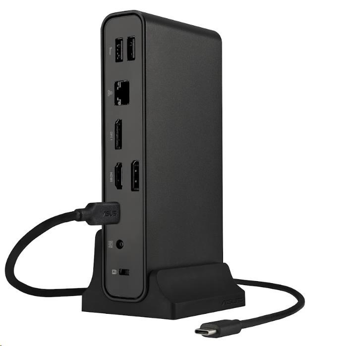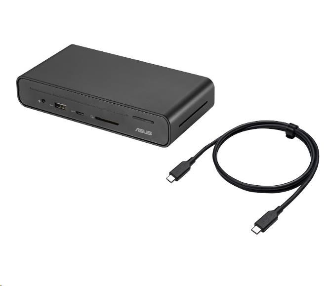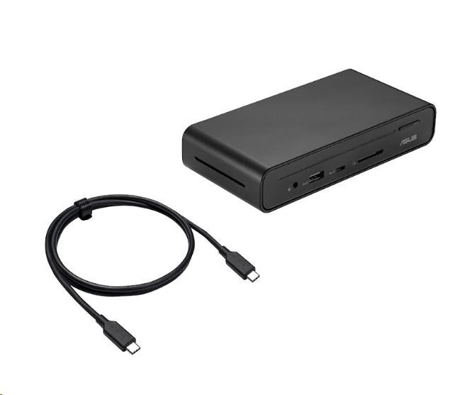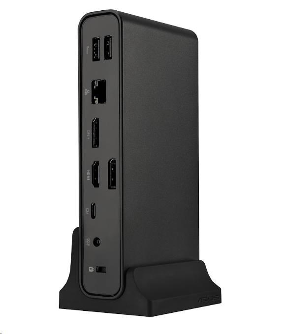 ASUS Triple Display USB-C Dock je elegantní a kompaktní zařízení, které zjednodušuje připojení notebooku. Napájejte notebook jediným kabelem, připojte se k síti a periferním zařízením a pracujte na více úlohách až se čtyřmi monitory - včetně monitoru notebooku a tří externích monitorů. Má také integrovanou čtečku karet SD pro nejrůznější pracovní scénáře. Jednoduše řečeno, dokovací stanice ASUS Triple Display USB-C Dock udrží váš stůl čistý, uklizený a organizovaný a zároveň vás v mžiku připraví na práci.