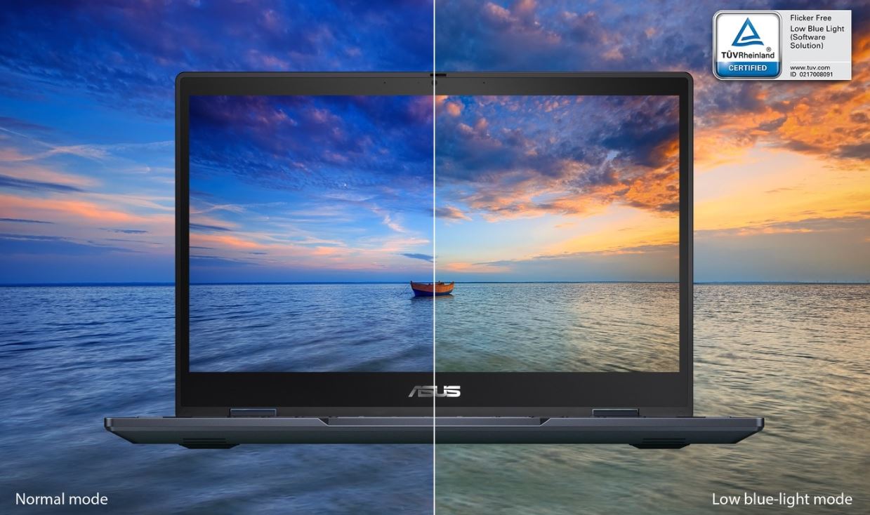 Vícedotykový displej s tenkým rámečkem notebooku ExpertBook B3 Flip poskytuje intuitivní prvky pro moderní výuku a práci. Panel je navíc certifikován společností TÜV Rheinland pro nízké emise vyzařovaného modrého světla, což pomáhá chránit oči před únavou. Budete tak moci studovat či pracovat bez obav, že si zkazíte oči.