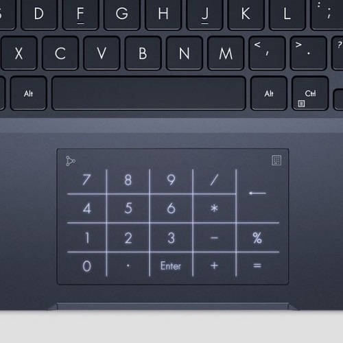 ASUS NumberPad 2.0 je numerická klávesnice s LED podsvícením, která je ideální pro zadávání čísel. Klepnutím na ikonu NumberPad 2.0 v pravém horním rohu touchpadu ji zapnete a klepnutím na ikonu vlevo přepínáte mezi dvěma nastaveními jasu. Chytrý software umožňuje ovládat kurzor, i když je NumberPad 2.0 aktivován.