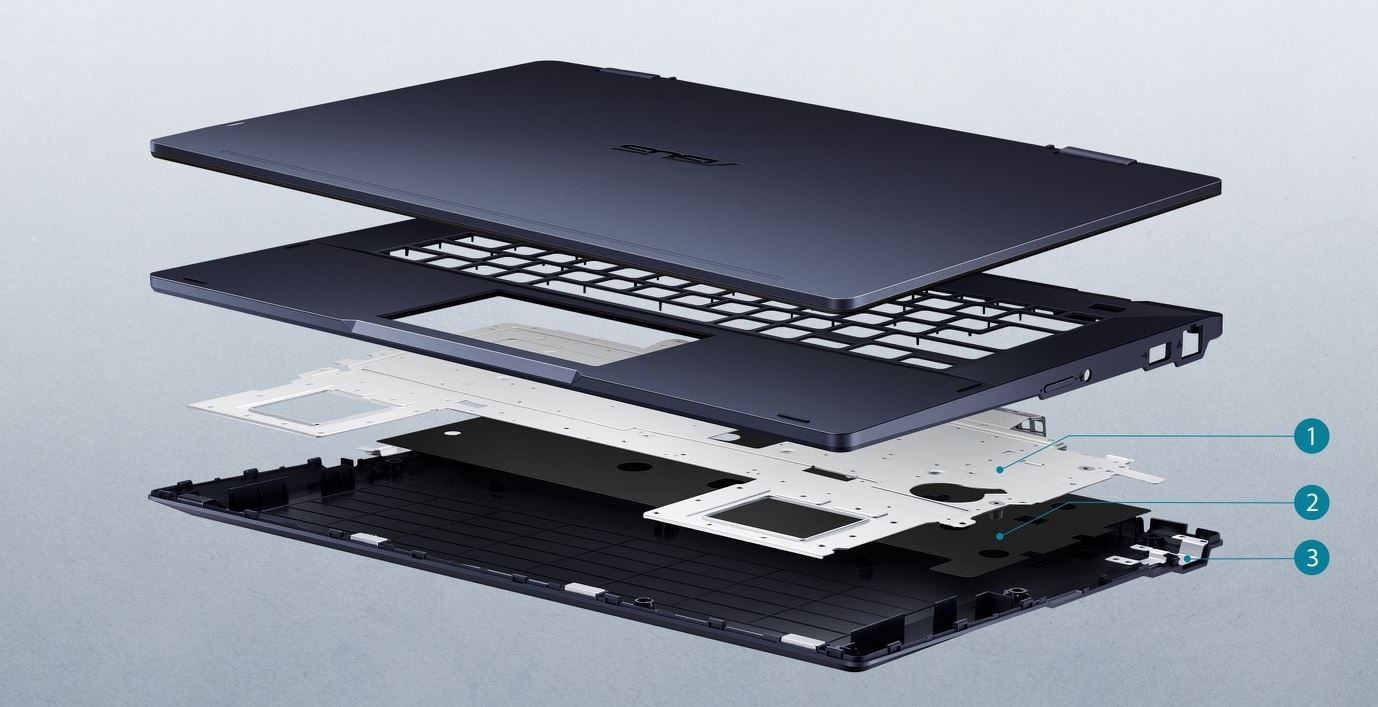 Život na cestách je náročný, a proto je notebook ExpertBook B3 Flip navržen tak, aby splňoval a překonával náročné průmyslové normy – včetně velmi náročného amerického vojenského standardu MIL-STD 810H. Je zkonstruován tak, aby přežil všechny extrémy, od mrazu přes spalující horko pouštních bouří či nárazy při vysokých rychlostech až po každodenní ťukance. B3 Flip také prochází přísným interním testováním, včetně tlakových testů na panelu displeje či testů nárazů a pádů, což dává záruku seriózní odolnosti.