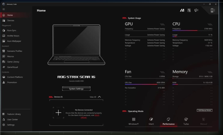 Armoury Crate je vašĂm Ĺ™ĂdicĂm centrem, kdyĹľ chcete upravit nastavenĂ, sledovat teploty nebo vyladit vĂ˝kon vašeho notebooku. MonitorovánĂ v reálnĂ©m ÄŤase vám umoĹľĹuje sledovat, co dÄ›lá grafika, procesor a paměť. RGB osvÄ›tlenĂ lze pomocĂ funkce Aura Sync nastavovat u jednotlivĂ˝ch her. Profily ventilátorĹŻ a napájenĂ umoĹľĹujĂ za chodu mÄ›nit akustickĂ©, napájecĂ a chladicĂ vlastnosti notebooku. DĂky exkluzivnĂ nabĂdce her bude vaše knihovna stále aktuálnĂ.