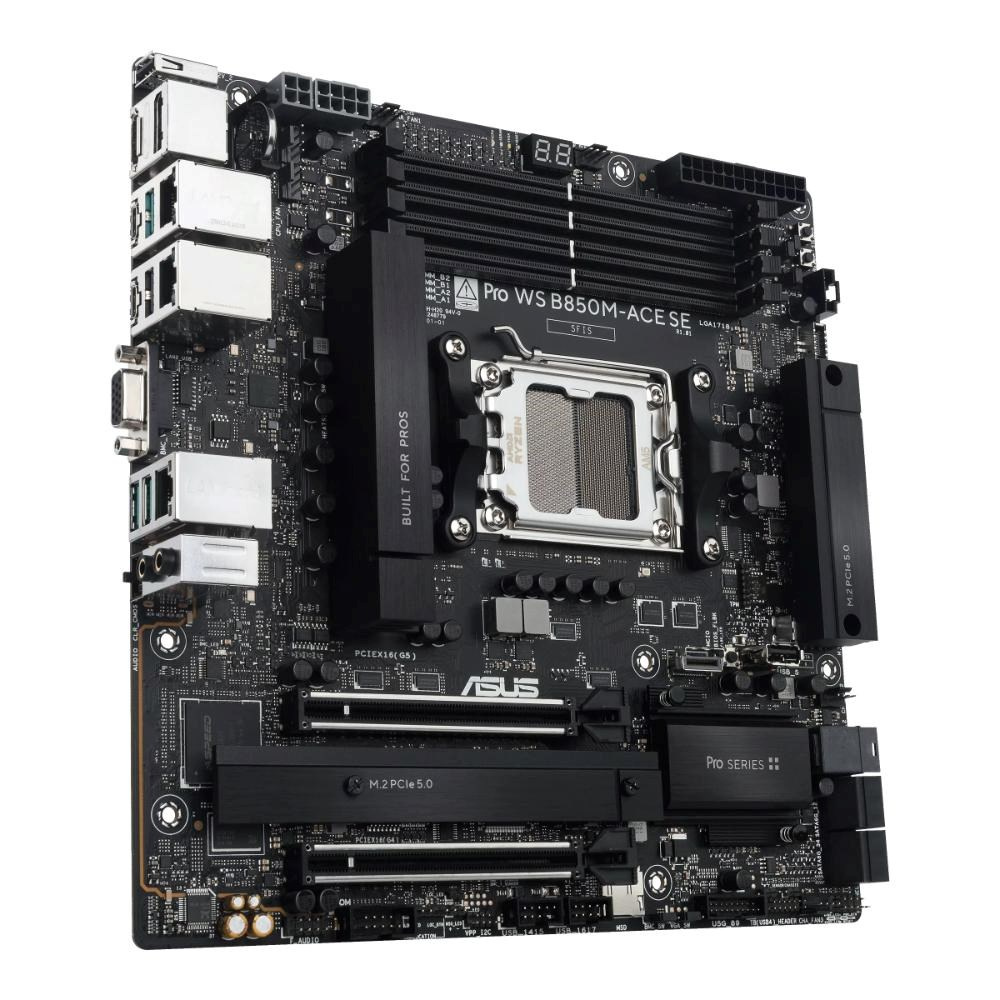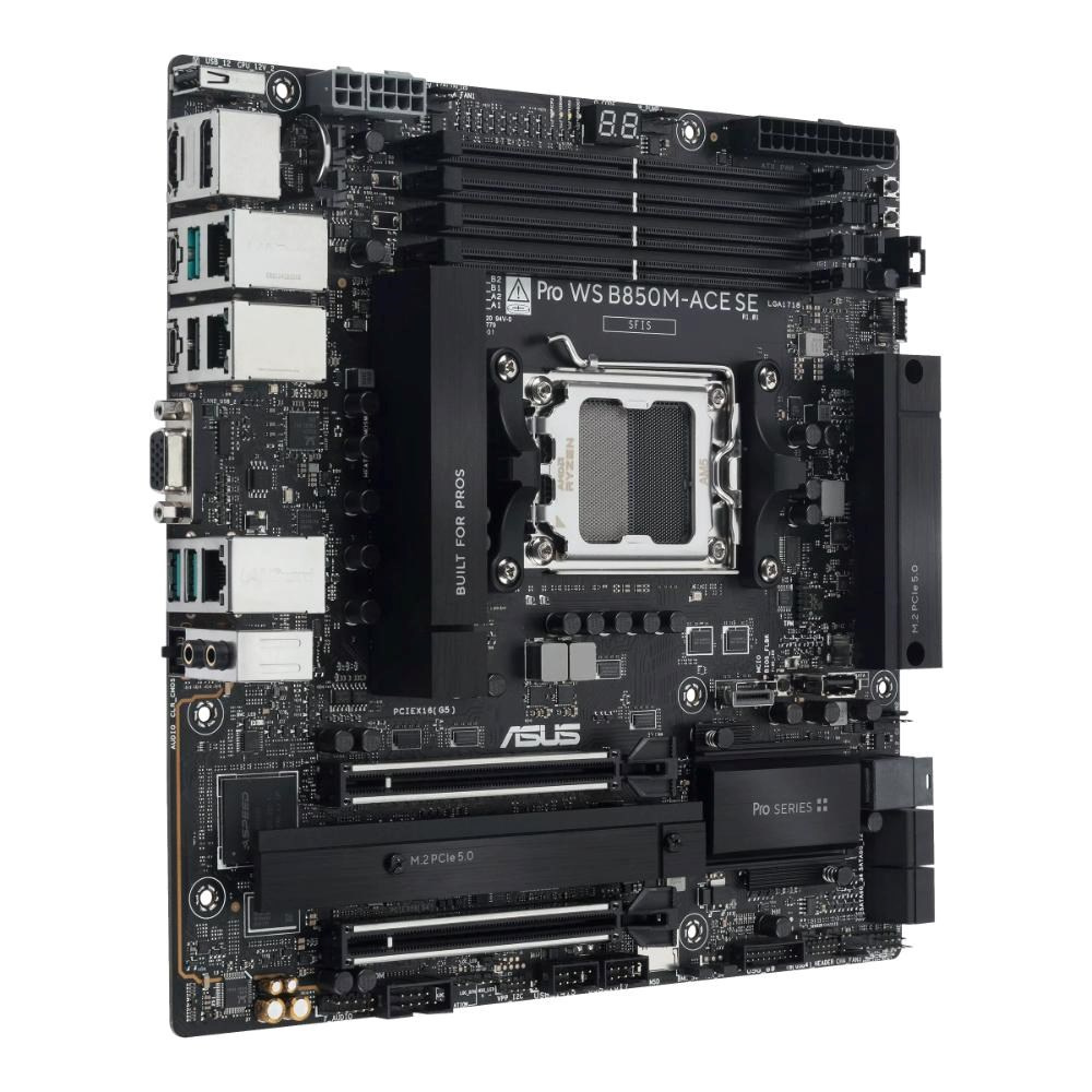 ASUS Pro WS B850M-ACE SE AMD Micro-ATX motherboard, with server-grade IPMI management, PCIe 5.0 x 16, PCIe 5.0 M.2, PCIe 5.0 MCIO, U.2 connector, 10Gb and 2.5Gb Ethernet, ready for USB4.