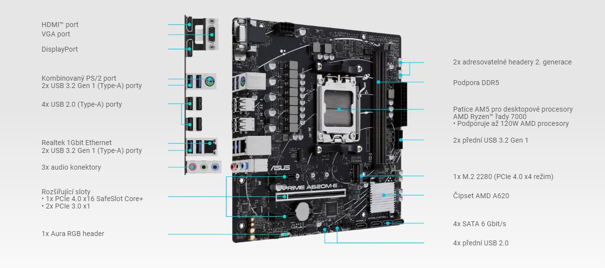 ZákladnĂ desky ASUS Ĺ™ady PRIME jsou odbornÄ› navrĹľeny tak, aby naplno vyuĹľily potenciál procesorĹŻ AMD Ryzen Ĺ™ady 7000. ZákladnĂ deska PRIME A620M-E-CSM se mĹŻĹľe pochlubit robustnĂ konstrukcĂ napájenĂ, komplexnĂm Ĺ™ešenĂm chlazenĂ i moĹľnostmi inteligentnĂho ladÄ›nĂ. UĹľivatelĹŻm i DYI stavitelĹŻm nabĂzĂ Ĺ™adu optimalizacĂ vĂ˝konu prostĹ™ednictvĂm intuitivnĂch funkcĂ softwaru a firmwaru.
