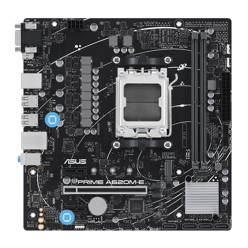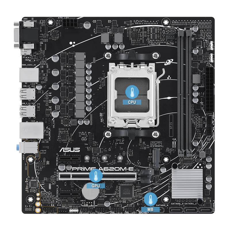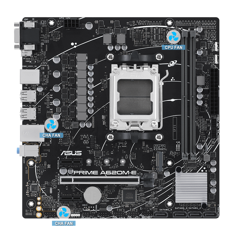 ZákladnĂ deska PRIME A620M-E-CSM je vybavena Ĺ™adou hybridnĂch ventilátorĹŻ a dvouuncovou mÄ›dÄ›nou PCB konstrukcĂ, která zajistĂ, Ĺľe vaše sestava zĹŻstane chladná a stabilnĂ i pĹ™i intenzivnĂm pracovnĂm zatĂĹľenĂ.