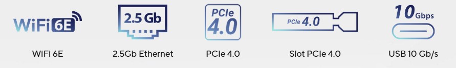 Tato základnĂ deska nabĂzĂ všestrannĂ© moĹľnosti pĹ™ipojenĂ, vÄŤetnÄ› podpory WiFi 6E, slotu PCIe 4.0 a arzenál portĹŻ USB, vÄŤetnÄ› pĹ™ipojenĂ Type-C.S