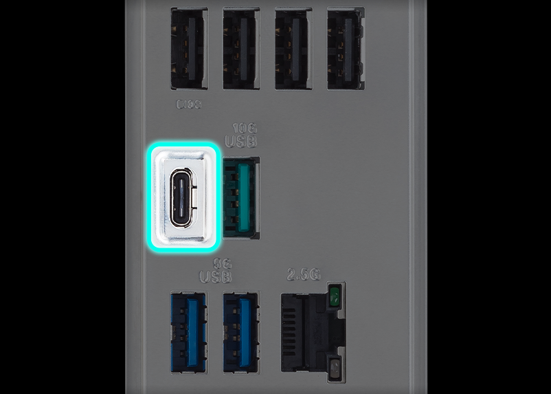 Sada USB portĹŻ podporuje špiÄŤkovĂ© sestavy s mnoha pĹ™ipojenĂ˝mi periferiemi, vÄŤetnÄ› zadnĂho konektoru USB Type-C s rychlĂ˝m rozhranĂm USB 10 Gb/s, kterĂ© zajistĂ pĹ™enosovĂ© rychlosti aĹľ 10 Gb/s.