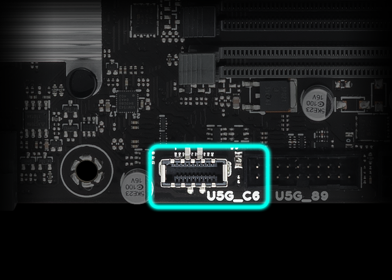 Tato deska je vybavena konektorem USB 5Gb/s Type-C na pĹ™ednĂm panelu pro bleskovĂ© datovĂ© pĹ™enosy rychlostĂ aĹľ 5 Gb/s.