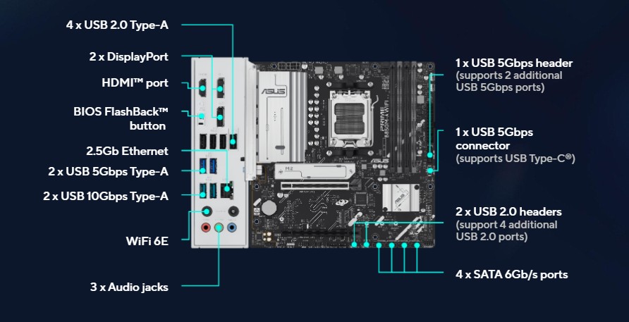 Ethernet: 1 x Realtek 2.5Gb Ethernet, ASUS LANGuard