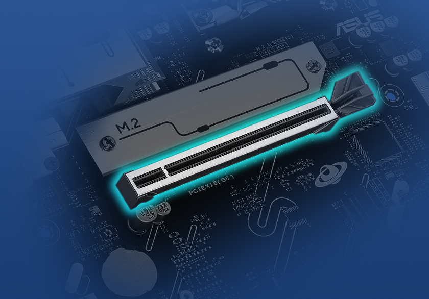 PCIe 5.0 je dvakrát rychlejšà neĹľ PCIe 4.0. SpoleÄŤnost ASUS pĹ™izpĹŻsobila naši vĂ˝robu SMT pro rychlejšà SafeSlot, zesĂlenĂ˝ kovovĂ˝ plášť, kterĂ˝ zajišťuje bezpeÄŤnou instalaci karty a vyššà rychlost pĹ™enosu dat.