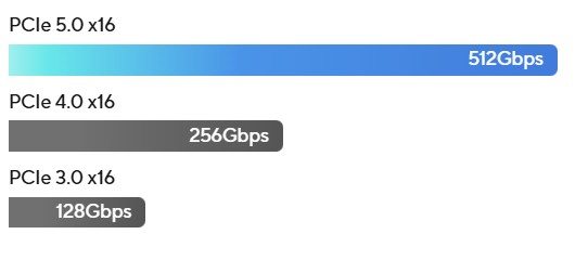 NejnovÄ›jšà procesory podporujĂ rozhranĂ PCIe 5.0, kterĂ© oproti PCIe 4.0 zdvojnásobuje rychlost pĹ™enosu dat, zvyšuje integritu signálu a poskytuje zpÄ›tnÄ› kompatibilnĂ konektory CEM a podporu pĹ™edchozĂch verzĂ PCIe.