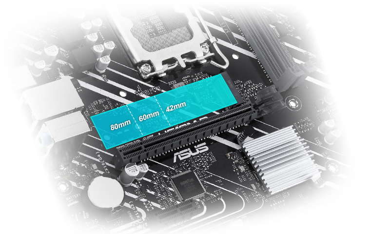 * 1x M.2 (Key M), typ 2242/2260/2280 (podporuje režim PCIe 3.0 x4)