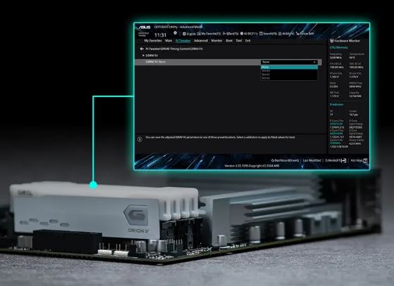 DIMM Fit je exkluzivní funkce systému BIOS společnosti ASUS, která přesně analyzuje jednotlivé paměťové moduly za účelem optimalizace výkonu a určení potenciálních problémů. To nabízí špičkovou efektivitu, kompatibilitu a stabilitu systému. Ať už jste overclocker, který hledá maximální výkon, konkurent sledující nejcitlivější hru nebo tvůrce obsahu upřednostňujícího pevnou stabilitu, DIMM Fit poskytuje optimalizace přizpůsobené vašim potřebám a vaší hardwarové konfiguraci.