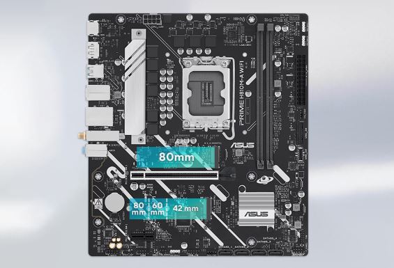 PRIME H810M-A WIFI nabízí celkem dva sloty M.2, včetně jednoho, který podporuje přenos dat rychlostí až 64 Gb/s přes PCIe 4.0, a jednoho, který podporuje 32 Gb/s přes PCIe 4.0. To umožňuje rychlejší spouštění a načítání aplikací s operačním systémem nebo aplikačními jednotkami.