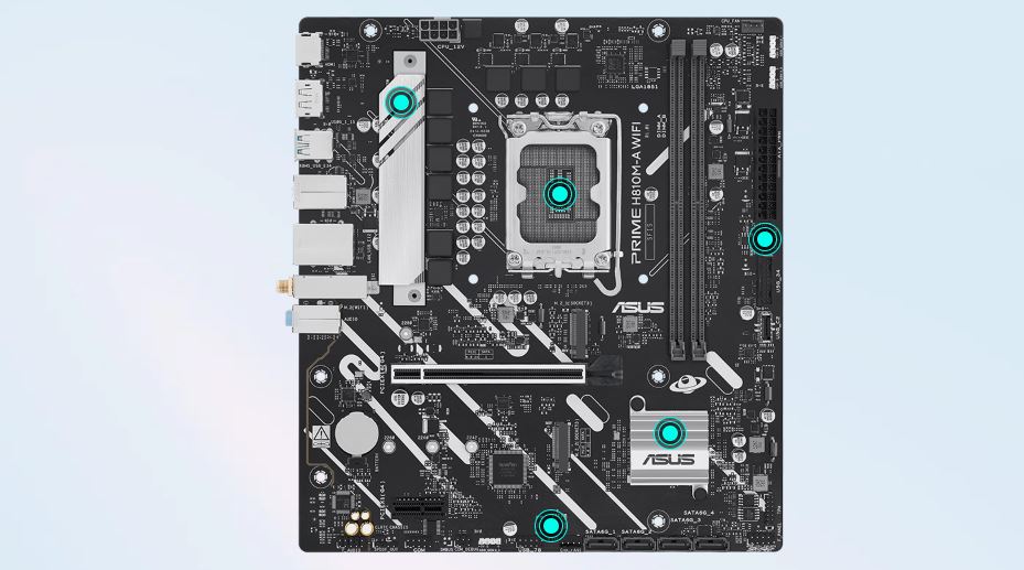 Základní deska PRIME H810M-A WIFI je navržena s několika integrovanými chladiči a řadou hybridních konektorů ventilátorů, které pomáhají zajistit, aby vaše zařízení zůstalo chladné a stabilní i při intenzivním pracovním zatížení.