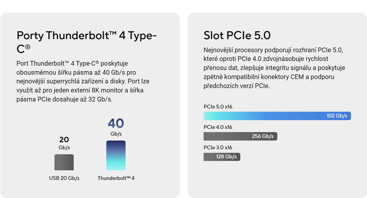 * 1x Intel® Thunderbolt™ 4 (USB typ C®) podporuje video výstupy DisplayPort a Thunderbolt™