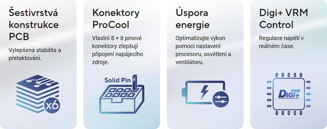 Základní deska PRIME Z890-P WIFI je vybavena několika integrovanými chladiči a řadou hybridních headerů ventilátorů, které pomáhají zajistit, že vaše sestava zůstane i při intenzivní zátěži chladná a stabilní.