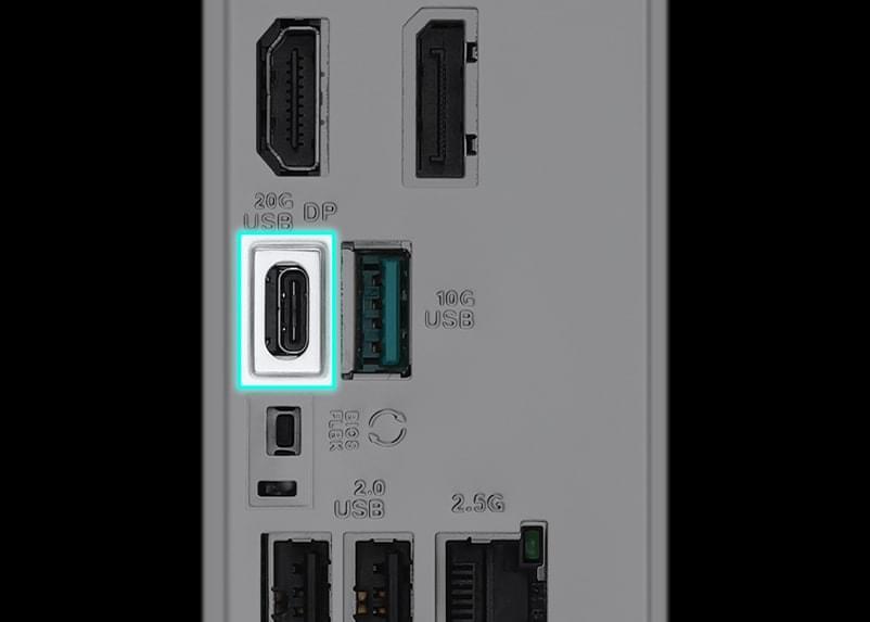 Dávka portů USB podporuje špičkové sestavy nabité periferiemi, včetně zadního portu USB typu C s přenosovou rychlostí až 20 Gb/s. Port může také podporovat externí obrazový výstup 4K DisplayPort.