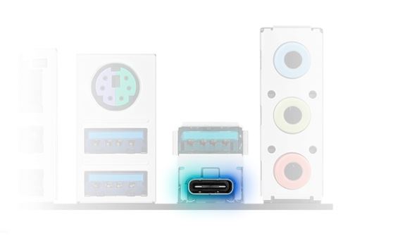 Sada USB portů podporuje špičkové sestavy s mnoha připojenými periferiemi, včetně zadního portu USB Type-C® s rychlým rozhraním USB 10 Gb/s, které zajistí přenosové rychlosti až 10 Gb/s.
