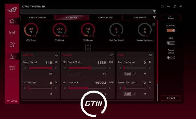 Nástroj ASUS GPU Tweak lll posouvá ladění grafických karet na novou úroveň. Umožňuje vám ladit důležité parametry, včetně taktování jádra GPU, frekvence paměti a nastavení napětí, s možností sledovat vše v reálném čase prostřednictvím přizpůsobitelného zobrazení na obrazovce. Součástí jsou také pokročilé možnosti ovládání ventilátorů a mnoho dalších funkcí, které vám pomohou vytěžit z grafické karty maximum.