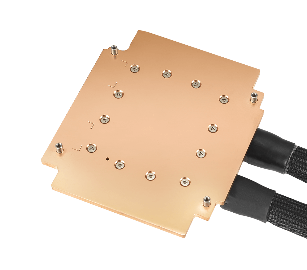 Celoplošná chladicí deska pokrývá všechny součásti desky plošných spojů, které generují teplo, a umožňuje tak ventilátoru účinně chladit grafickou kartu, což přináší až o 30 % vyšší výkon ve srovnání s čistě vzduchovým chlazením.