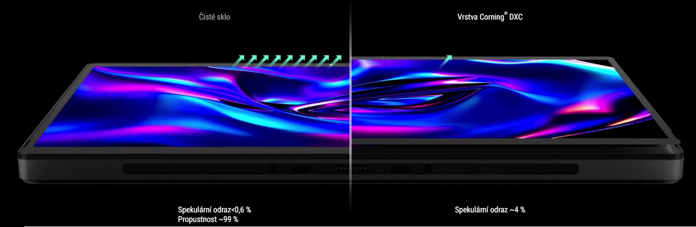 Displej: dotykový 13,4" ROG Nebula HDR 2,5K (2560x1600, WQXGA) 16:10 lesklý IPS, 180Hz, 500 nitů, 100% DCI-P3, Adaptive-Sync, Pantone Validated