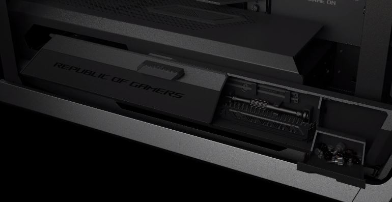 Toto šasi je vybaveno vnitřním světelným ARGB panelem, který oznámí identitu ROG každému, kdo se do něj podívá. Může být umístěn na vnější straně, chtějí-li stavitelé na tomto místě uvolnit místo pro ventilátory nebo SSD disky.