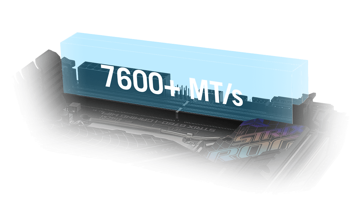* 2x DIMM, Max. 64GB, DDR5 7600(OC)/7466(OC)/7200(OC)/7000(OC)/6800(OC)/6600(OC)/6400(OC)/6200(OC)/6000(OC)/5800(OC)/5600/5400/5200/5000/4800 bez ECC, bez vyrovnávací paměti