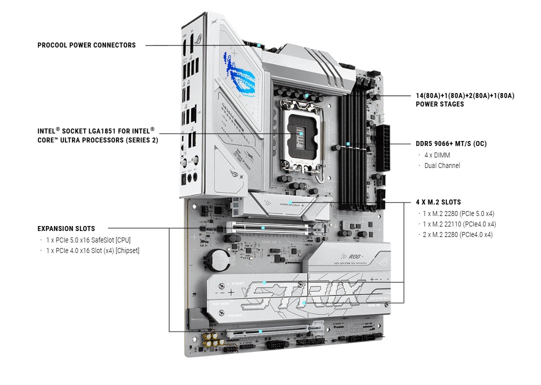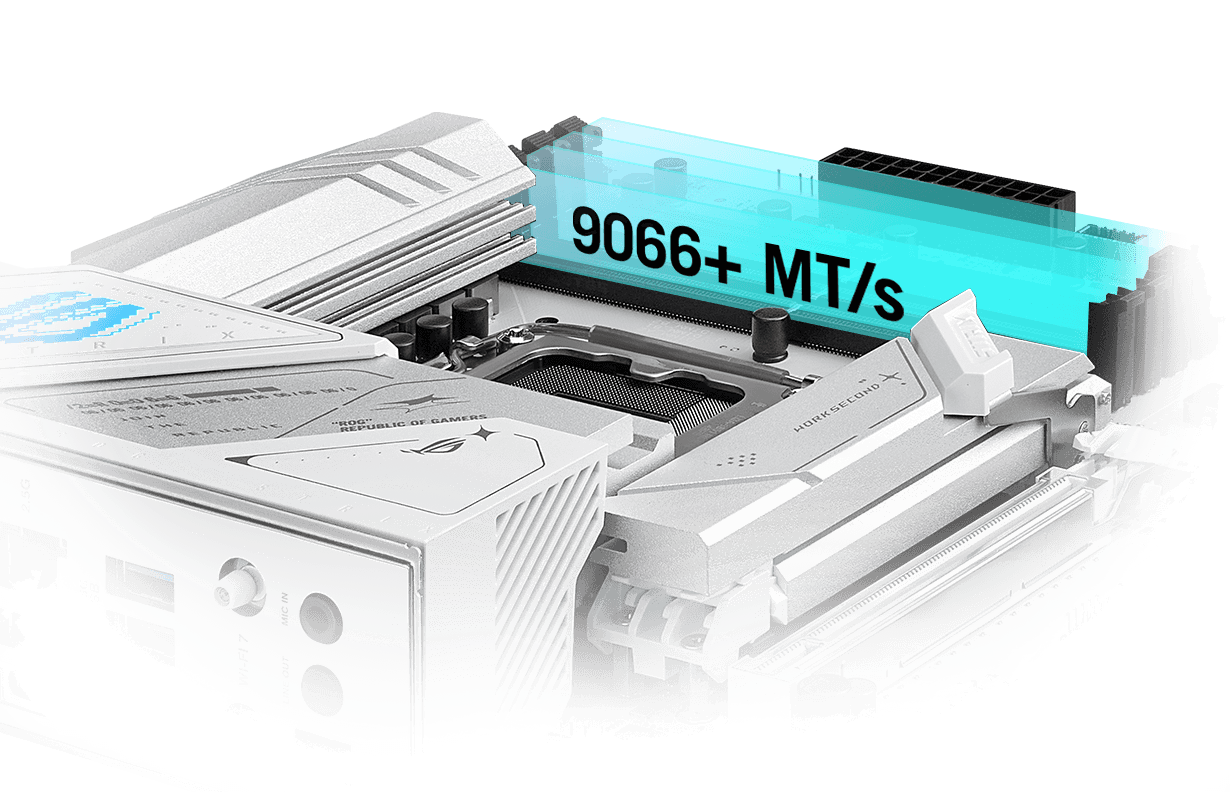 SpoleÄŤnost ROG má bohatou historii poskytovánà špiÄŤkovĂ©ho vĂ˝konu pamÄ›tĂ a DDR5 nenĂ vĂ˝jimkou. VylepšenĂ© smÄ›rovánĂ signálu mĹŻĹľe u modelu Strix B860-A posunout sady pro nadšence daleko za hranici 9 GT/s, pĹ™iÄŤemĹľ na obzoru jsou ještÄ› vyššà rychlosti. ZkušenĂ˝m uĹľivatelĹŻm nabĂzĂ UEFI širokou škálu moĹľnostĂ, jak vyladit a posunout vĂ˝kon aĹľ na hranice moĹľnostĂ.