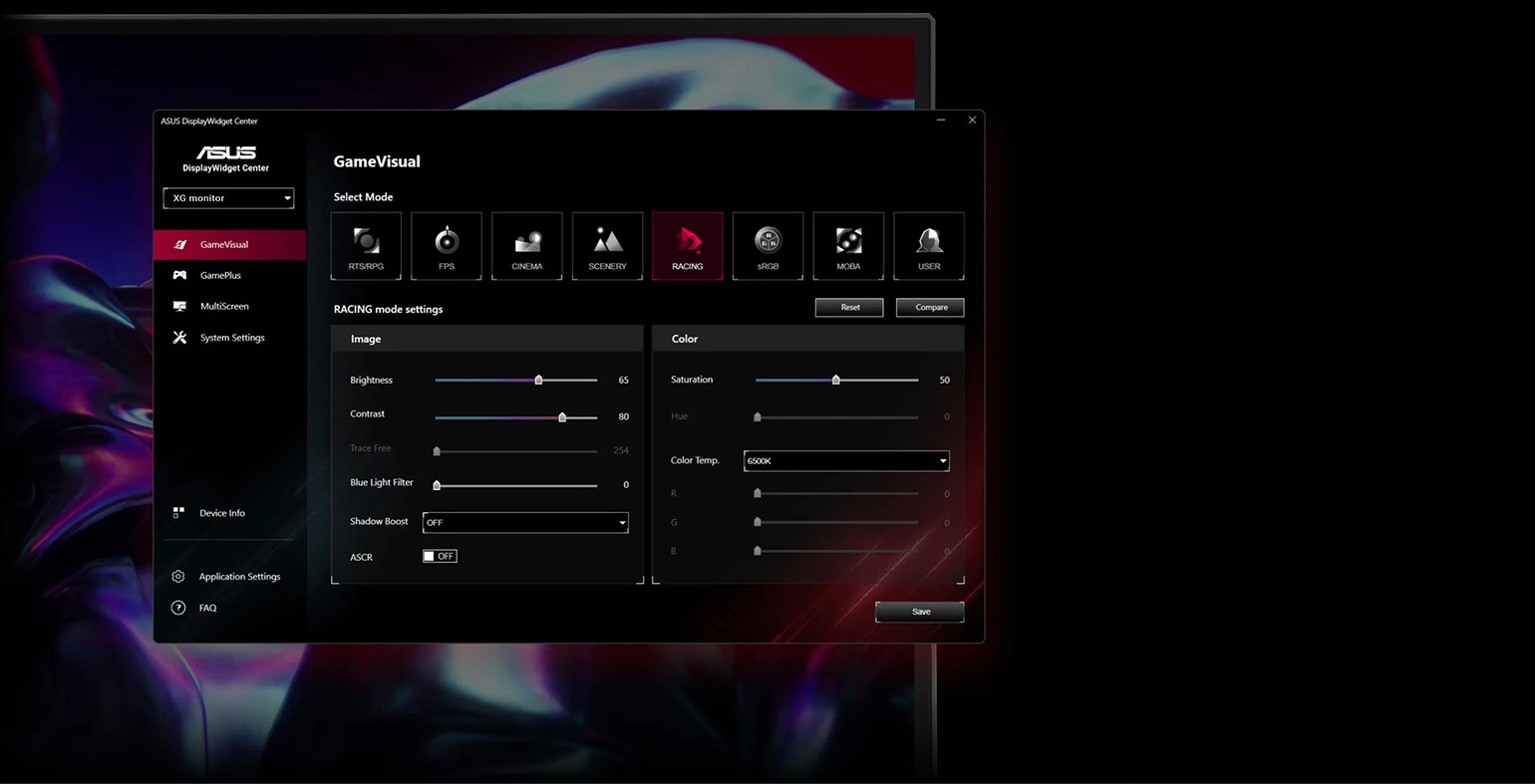 Snadno upravte nastavení monitoru pomocí intuitivní aplikace DisplayWidget Center, takže nepotřebujete fyzická tlačítka. Snadno si přizpůsobte nastavení pro různé hry a aplikace.