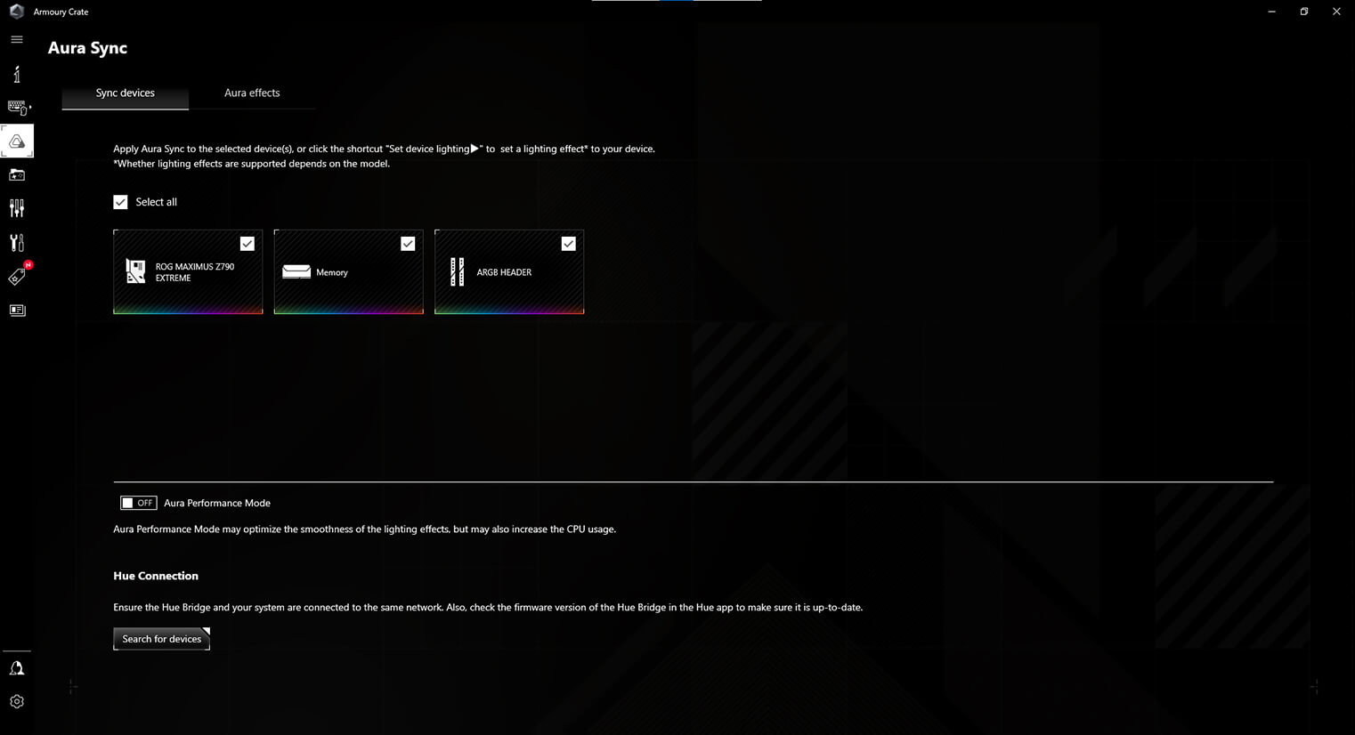 Armoury Crate je softwarový nástroj určený k centralizovanému ovládání podporovaných herních produktů, který usnadňuje vyladění vzhledu systému. Z jediného intuitivního rozhraní vám Armoury Crate pomůže přizpůsobit osvětlení RGB a efekty kompatibilních zařízení a synchronizovat je s Aura Sync pro vytvoření jednotného schématu osvětlení v celém systému. Nástroj Fan Xpert4 společnosti Armoury Crate navíc poskytuje komplexní kontrolu nad ventilátory, vodními čerpadly a chladiči typu "vše v jednom" (AIO).