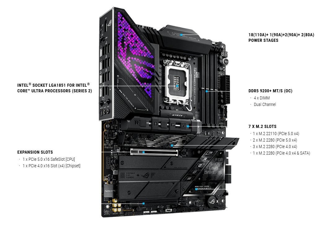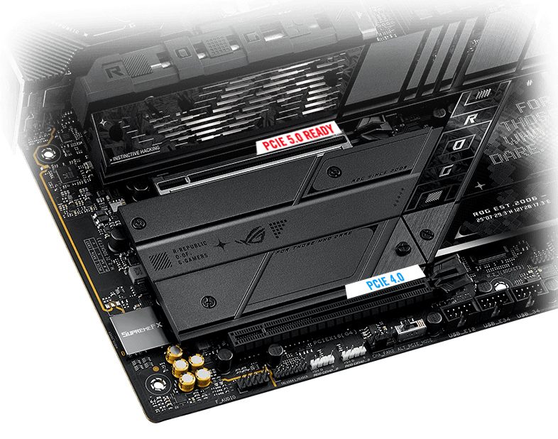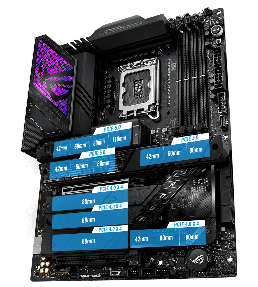 ROG Strix Z890-E je vybavena sedmi vestavÄ›nĂ˝mi sloty M.2, z nichĹľ tĹ™i jsou pĹ™ipraveny pro rozhranĂ PCIe 5.0 a nabĂzejĂ rychlost 16 GB/s, zatĂmco ostatnĂ nabĂzejĂ stále pĹŻsobivĂ˝ch 8 GB/s pĹ™es rozhranĂ PCIe 4.0.
