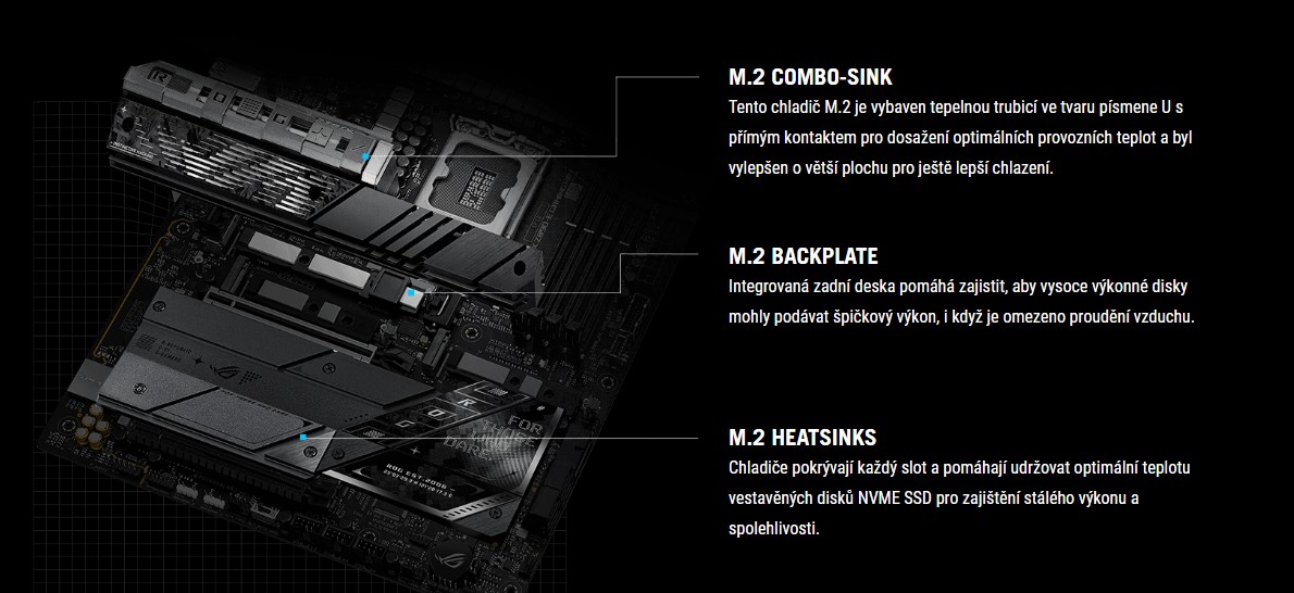 ROG M.2 PowerBoost je exkluzivnĂ funkce základnĂch desek ASUS, která poskytuje proud pĹ™esahujĂcĂ prĹŻmyslovĂ© standardy a umoĹľĹuje všem slotĹŻm M.2 pracovat souÄŤasnÄ› s optimálnĂm vĂ˝konem. Toto pokroÄŤilĂ© nastavenĂ napájenĂ pomáhá zajistit stabilitu a integritu dat i pĹ™i vysokĂ©m zatĂĹľenĂ a zároveĹ pomáhá zajistit jmenovitou Ĺľivotnost M.2 SSD.
