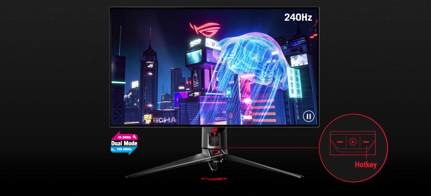 Herní monitor ROG Swift OLED PG32UCDP rozbíjí standard díky úžasné funkci duálního režimu. Tento 32palcový OLED displej vám umožňuje přepínat mezi úžasným rozlišením 4K @ 240 Hz až po ohromující zobrazení FHD @ 480 Hz pouhým klepnutím na klávesovou zkratku.