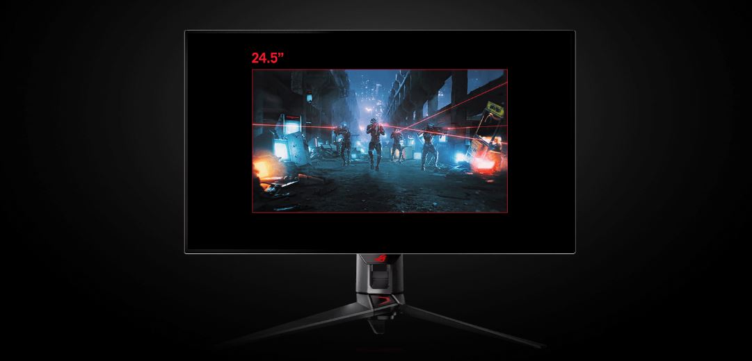 Pokud dáváte přednost hraní na menším monitoru, PG32UCDP podporuje řadu poměrů stran, což vám umožňuje vybrat si mezi 24,5palcovými (režim esports) nebo 27palcovými snímky.