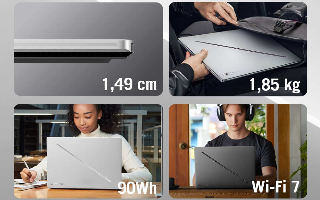 Zephyrus G16 byl vĹľdy charakteristickĂ˝ svou pĹ™enosnostĂ a model pro rok 2025 nenĂ vĂ˝jimkou. Tento úžasnĂ˝ hernĂ stroj je skuteÄŤnÄ› tenkĂ˝ a lehkĂ˝, vážà pouhĂ˝ch 1,85 kg a nÄ›kterĂ© modely majĂ tloušťku pouhĂ˝ch 1,49 cm. V kombinaci s 90Wh bateriĂ, která podporuje rychlĂ© nabĂjenĂ z 0 na 50 % za pouhĂ˝ch 30 minut, a podporou bezdrátovĂ˝ch sĂtĂ Wi-Fi 7 pĹ™edstavuje Zephyrus G16 dokonalĂ˝ stroj k hranĂ i práci pro ty, kteřà jsou ÄŤasto na cestách.