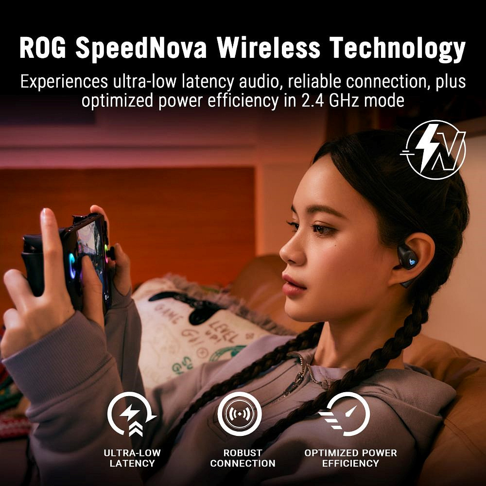 - Bezdrátové připojení ve dvou režimech: Bluetooth a režim ROG SpeedNova 2,4 GHz s ultra nízkou latencí, plus jednosměrné průchozí nabíjení přes USB-C
