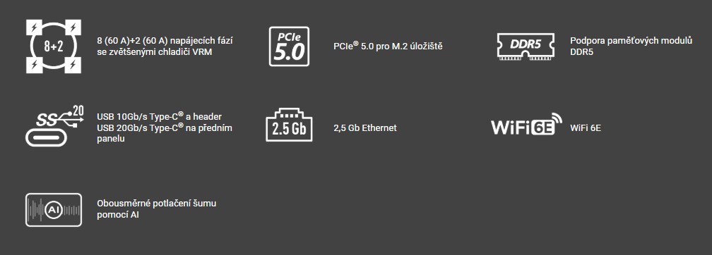 1 x USB 5Gbps header (pro 2 další USB 5Gbps porty)