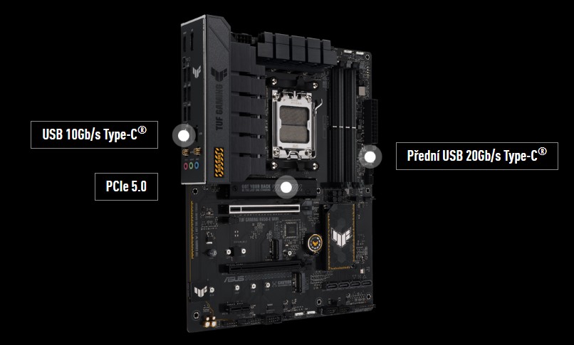 ZákladnĂ desky TUF GAMING B650 dosahujĂ novĂ˝ch výšin vĂ˝konnostnĂho potenciálu dĂky nejnovÄ›jšà verzi PCI Express, zatĂmco arzenál portĹŻ USB zahrnuje dvÄ› pĹ™ipojenĂ Type-C® a ještÄ› vĂce rozšiĹ™uje kompatibilitu a šĂĹ™ku pásma.