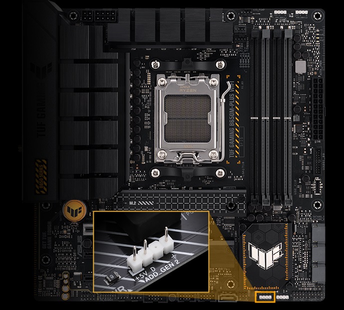 Tři adresovatelné hlavičky RGB Gen 2 podporují až 500 LED diod na zařízeních RGB Gen 2 a umožňují systému Aura Sync automaticky přizpůsobovat světelné efekty v celém systému. Nové headery také nabízejí plnou zpětnou kompatibilitu se stávajícím zařízením Aura Sync.