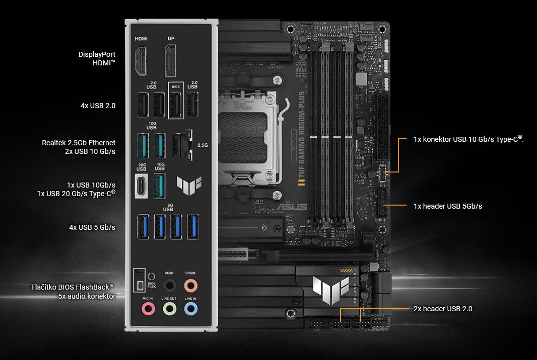 ASUS TUF GAMING B850M-PLUS vyuĹľĂvá všechny vĂ˝hody nejnovÄ›jšĂch procesorĹŻ AMD Ryzen™ a kombinuje je s funkcemi urÄŤenĂ˝mi pro hranĂ her a osvÄ›dÄŤenou odolnostĂ. Tato základnĂ deska je vybavena komponenty vojenskĂ©ho standardu, vylepšenĂ˝m Ĺ™ešenĂm napájenĂ a komplexnĂm systĂ©mem chlazenĂ. PĹ™ekoná vaše oÄŤekávánĂ, protoĹľe nabĂzĂ stabilnĂ vĂ˝kon bÄ›hem hernĂch maratonĹŻ. ZákladnĂ desky TUF GAMING navĂc procházejĂ pĹ™ĂsnĂ˝m testovánĂm odolnosti, aby bylo zajištÄ›no, Ĺľe zvládnou podmĂnky, ve kterĂ˝ch by jinĂ© desky mohly selhat. Tato platforma poskytuje vĂ˝kon a konektivitu, kterĂ© vyĹľadujĂ pokroÄŤilĂ© AI PC aplikace.