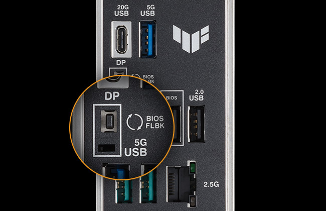 Funkce BIOS FlashBack zjednodušuje aktualizace systému BIOS. Stačí nahrát soubor BIOSu na USB flash disk FAT32, vložit jej do portu BIOS FlashBack a stisknout tlačítko - není potřeba procesor ani paměť.