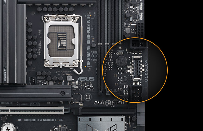 ASUS TUF GAMING B860-PLUS WIFI využívá všechny základní prvky nejnovějších procesorů Intel Core Ultra (řady 2) a kombinuje je s herními funkcemi a osvědčenou odolností. Tato základní deska, navržená s využitím komponentů armádní úrovně, vylepšeným řešením napájení a komplexním chladicím systémem, překonává očekávání a nabízí spolehlivý a stabilní výkon pro maratonské hraní. Základní desky TUF GAMING také procházejí přísnými testy odolnosti, aby se zajistilo, že zvládnou podmínky, kde by jiné selhaly. Tato platforma poskytuje výkon a konektivitu, které vyžadují pokročilé aplikace pro PC s umělou inteligencí.