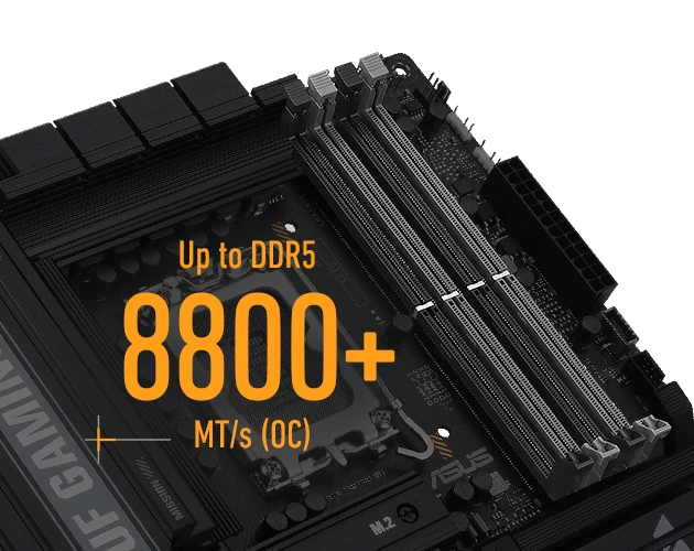 Atributem základnĂch desek TUF GAMING jsou komplexnĂ funkce pro ladÄ›nĂ pamÄ›ti. S touto deskou mĹŻĹľete z modulĹŻ DDR5 vytěžit veškerĂ˝ potenciál, aĹĄ uĹľ jde o sady s extrĂ©mnĂ rychlostĂ, nebo základnĂ sady, kterĂ© by jinak byly zamÄŤenĂ©.